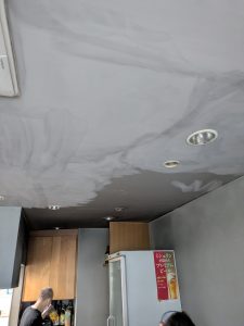 油を含んだ煤(スス)が店内の天井や壁に付着してしまいました。