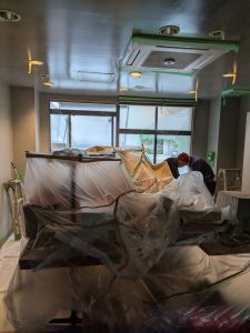 復旧作業は、煤払いや洗浄と、建築の工程が入り混じる事も普通なので、
