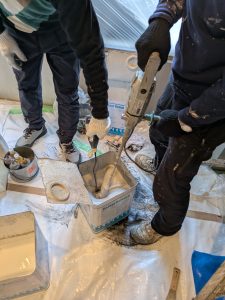 翌日木曜は臭いを物理的に封じ込める作業を行い、乾燥後の金曜日は仕上げの塗装工事。